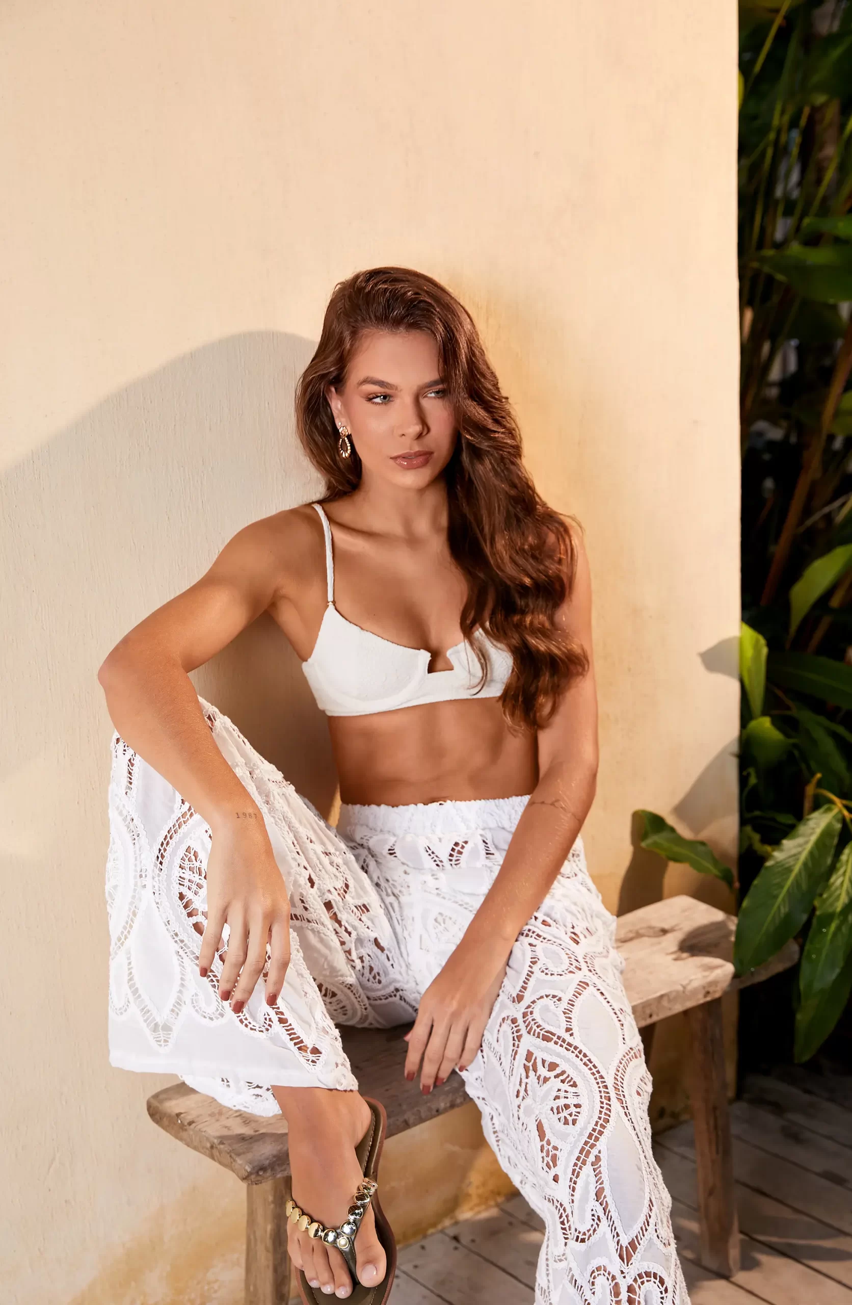 O Conjunto Lais foi desenvolvido para mulheres que desejam unir estilo, conforto e sofisticação em um só look. Composto por cropped de alças finas com decote reto e calça pantalona de cintura alta com detalhe em renda, é ideal para a praia, piscina ou para produções casuais e elegantes de verão.